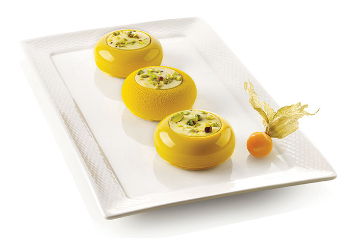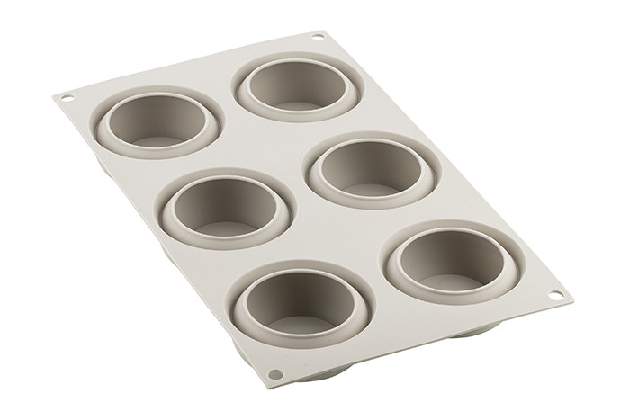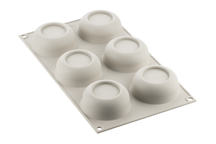 Die neue Kollektion von Silikonbackformen von Silikomart für das Jahr 2020 umfasst diese Form für kleine Cupcakes in Form eines Punktes. Mit der Form können Sie 6 kleine Desserts mit Dekorationen in Form von frischem Obst oder Gelee herstellen. Sie können darin Kuchen oder Ihre Lieblingsmousse zubereiten. Die Form ist temperaturbeständig von -60°C bis +230°C und kann daher in einem herkömmlichen Ofen, in der Mikrowelle oder im Kühlschrank verwendet werden. Die Größe jeder Vertiefung beträgt 7 x 3 cm.