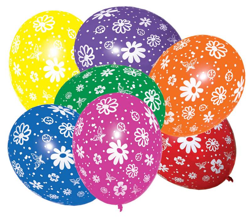 Ballons in bunter Ausführung mit Blümchenmotiv. 7 Stück pro Packung.
