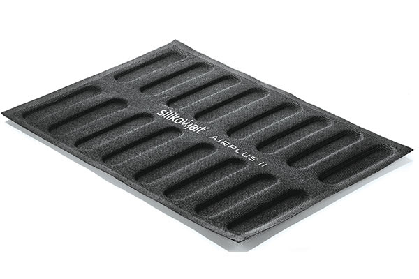 Die Silikonform von Silikomart mit AirPlus-System zeichnet sich durch kleine Perforationen aus. Sie ist aus Fiberglas gefertigt. Abmessungen: 30 x 40 cm.
