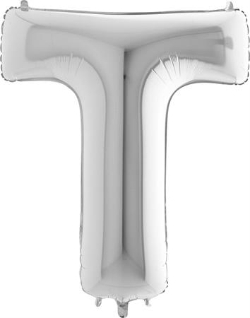 Silberballon Buchstabe T. Der Ballon besteht aus einer festen Folie. Nach dem Aufblasen mit Luft hält er mehrere Wochen, wenn Sie den Ballon mit Helium füllen lassen, bleibt er fest aufgeblasen und fliegt bis zu 4 Tage. Zum Aufblasen des Ballons verwenden