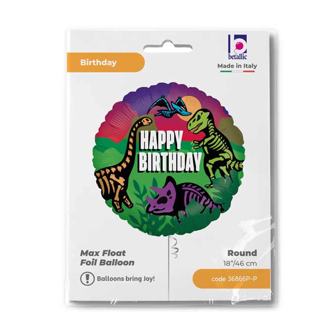 Aufblasbares Folienballon mit Dinosaurier-Motiv. Abmessungen 46 cm.