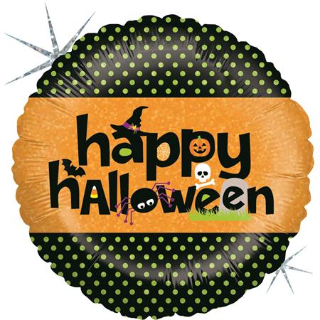 Gashalt Balloon, Halloween-Freude. Der Ballon besteht aus robustem Folienmaterial. Nach dem Aufblasen mit Luft hält er sich mehrere Wochen lang in vollem Zustand; wenn Sie den Ballon mit Helium befüllen, bleibt er fest aufgeblasen und wird bis zu 4 Tage fliegen. Verwenden Sie zum Ballonaufblasen immer speziell dafür vorgesehene Pumpen; wenn Sie einen Kompressor mit hohem Druck verwenden, kann der Ballon platzen. Nicht geeignet für Kinder unter 3 Jahren. Helium nicht einatmen.