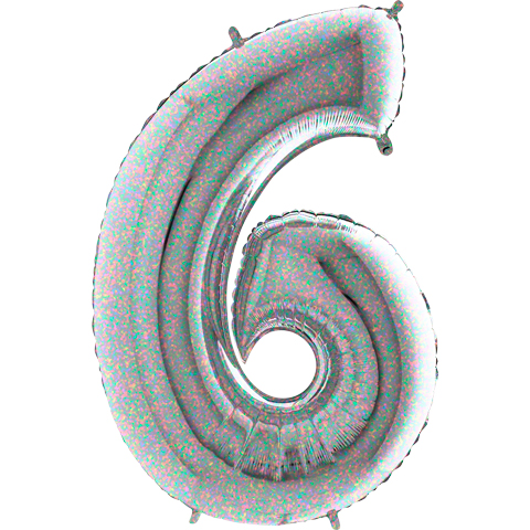 Holografischer Ballon Nummer 6. Der Ballon besteht aus einer festen Folie. Nach dem Aufblasen mit Luft hält er sich mehrere Wochen lang gefüllt, wenn Sie den Ballon mit Helium füllen lassen, bleibt er fest aufgeblasen und wird bis zu 4 Tage fliegen. Verwenden Sie zum Aufpumpen des Ballons immer spezielle Pumpen, die dafür vorgesehen sind; wenn Sie einen Kompressor mit hohem Druck verwenden, kann der Ballon platzen. Nicht geeignet für Kinder unter 3 Jahren. Helium nicht einatmen.