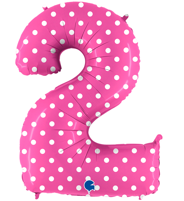 Aufblasbarer Ballon Nummer 2 rosa mit Punkten 102 cm
