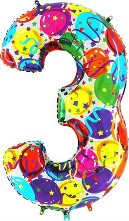 Aufblasbarer Ballon Nummer 3 bunte Ballons 102 cm extra groß