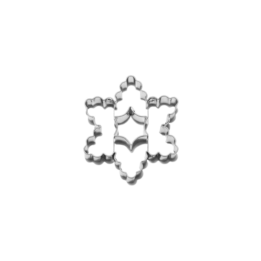Eine Ausstechform aus verschiedenen Teigsorten in Form eines gezackten Sterns mit einem kleinen runden Stern in der Mitte. Für die abschließende Dekoration des gebackenen Kreises können Sie die verschiedenen Konditoreimassen, Cremes und essbaren Dekorationen sowie die von uns angebotenen Dekorationssets verwenden. Die Ausstechform ist aus ungiftigem Weißblech gefertigt und lässt sich nach dem Gebrauch ganz einfach reinigen. Abmessungen: 5,7 x 6,7 cm / Höhe 1,6 cm