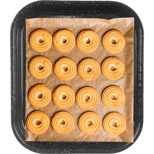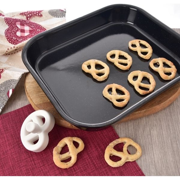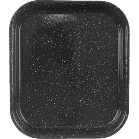 Tiefes Emailleblech. Sie können es zum Backen von Fleisch und Desserts verwenden. Abmessungen: innen 27,5x23,5x4,5 cm, außen 29,5x25,5x4,5 cm. Geeignet für die Spülmaschine und alle Arten von Öfen.