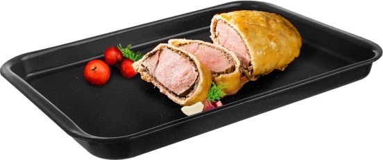 Die Zubereitung von Fleisch, Bratkartoffeln, hausgemachten Pizzen, Gebäck, aber auch von Süßspeisen, Kuchen, Brötchen und Bonbons ist ohne ein hochwertiges Backblech nicht denkbar. Das kleinere, niedrige emaillierte Backblech ist auch ideal zum Backen von Osterlebkuchen oder Weihnachtsplätzchen und Spritzgebäck. Maße: 35,5 x 24 x 2,5 cm (innen 32,5 x 22,5 x 2,5 cm)