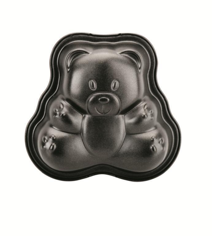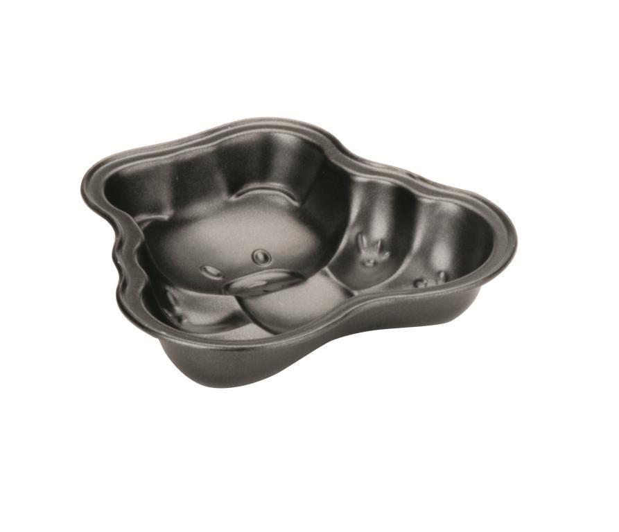 Teflonbeschichtete Stahlform in Form eines Teddys. Ideales Backwerkzeug für kleine Kinder. Der Durchmesser des Produkts beträgt 10 cm.