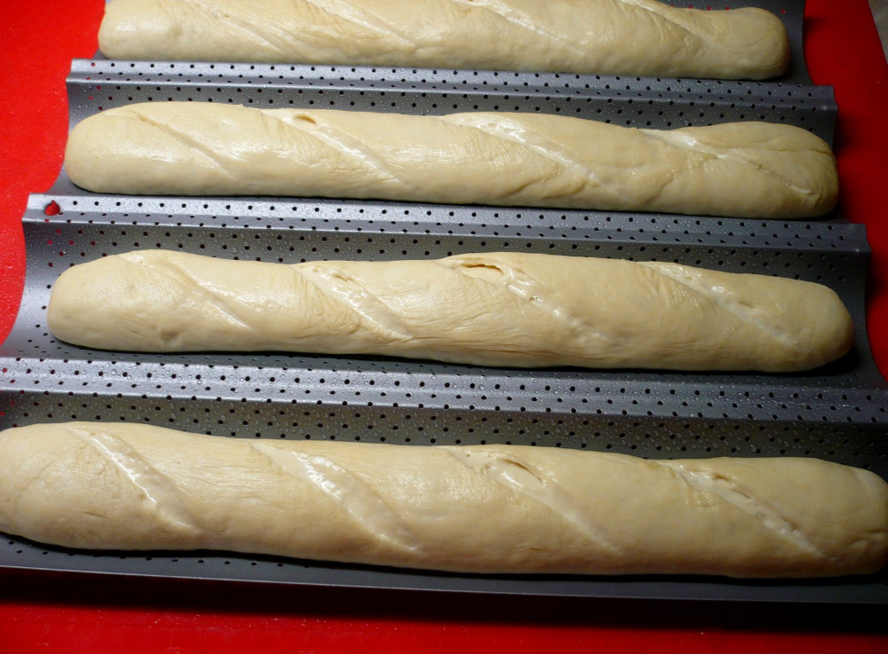 Ich kann das Baguette-Backblech nur empfehlen. Ich finde es sehr einfach zu verarbeiten, der Hauptvorteil ist, dass die Baguettes ihre Form behalten und der Teig etwas locker sein kann. Die Oberfläche ist antihaftbeschichtet, man muss sie nicht mit irgendetwas beschichten. Ein weiterer unbestreitbarer Vorteil ist, dass das Backblech gelocht ist und die Baguettes auf der gesamten Oberfläche gut und gleichmäßig gebacken werden und schön knusprig sind. Ich backe verschiedene Arten von Baguettes auf dem Backblech, je nachdem, was ich dazu servieren möchte. Aber ich bin noch nie enttäuscht worden. Die ohne Fett sind für den Verzehr am Tag des Backens gedacht, und die mit Fett oder Grieben im Teig sind am nächsten Tag noch feucht.