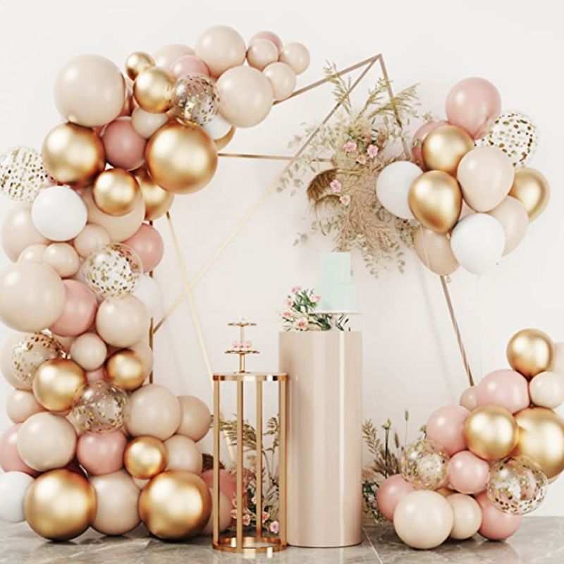 Wunderschöne Girlande aus Ballons in einer altgoldenen Farbkombination sorgt wirklich für eine festliche Atmosphäre. Diese atemberaubende Girlande wirkt wunderschön an der Wand über dem Tisch befestigt als Hauptdekoration Ihrer Feier. Sie können sie über dem Eingang montieren und so ein spektakuläres Tor schaffen. Diese elegante und stilvolle Dekoration zieht Aufmerksamkeit auf sich und erfreut alle Gäste. Ideal für Hochzeit, Taufe, Geburtstag, Erstkommunion, Jubiläum oder eine andere luxuriöse Feier. Dank der phänomenalen Ballon-Dekoration setzen Sie den Ort für Erinnerungsfotos optimal in Szene. Installieren Sie unter der Girlande eine farblich abgestimmte Vorhang. Legen Sie vor ihrem Hintergrund einen Strauß Heliumballons, bereiten Sie eine Bar oder eine süße Speisekarte vor. Verwöhnen Sie Ihre Gäste mit unvergesslichem Spaß beim Festhalten glücklicher Partyfotos.