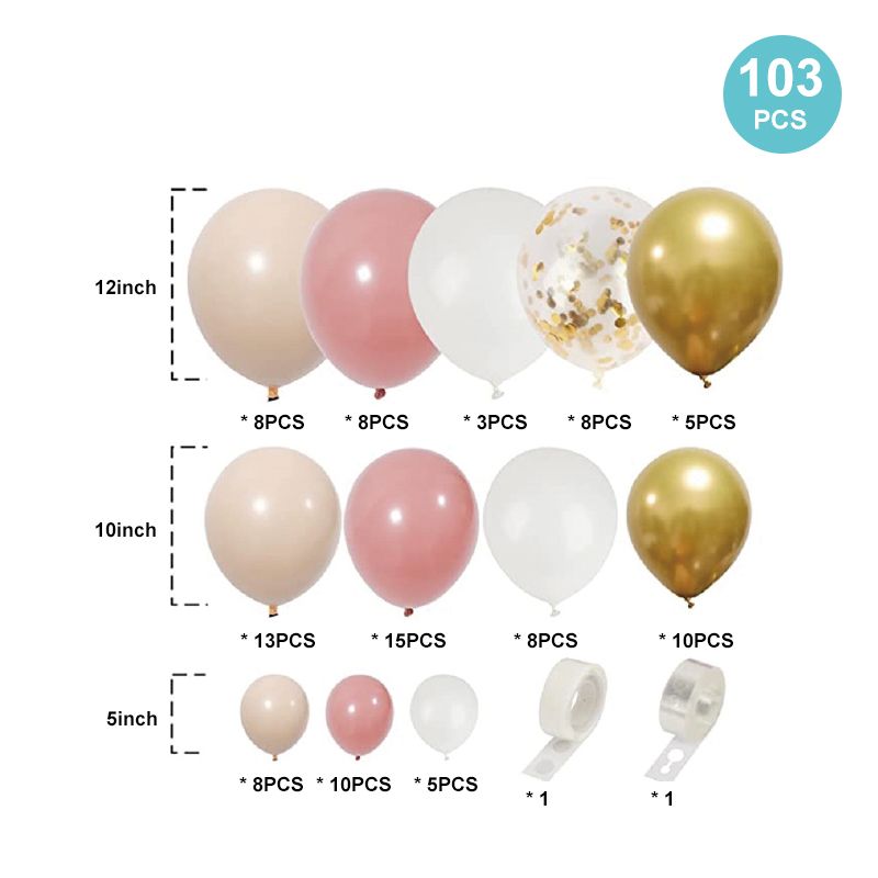 Ballonggirlande - altgoldfarben. Im Paket 103 Stück.