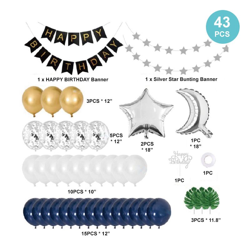 Ballonggirlande - blau-weiß. Im Set 42 Stück.