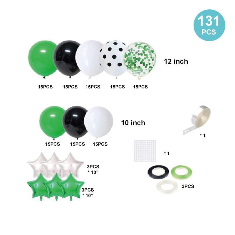 Prachtvol garland aus grünen und goldenen Ballons sorgt wirklich für eine festliche Atmosphäre. Diese atemberaubende Girlande sieht an der Wand über dem Tisch befestigt schön aus und ist die Hauptdekoration Ihrer Feier. Sie können sie über den Eingang montieren und so ein gigantisches Tor schaffen. Diese elegante und stilvolle Dekoration zieht Aufmerksamkeit auf sich und freut alle Gäste. Ideal für Tauf-, Geburtstags-, Abschluss- oder Start der Fußball-Saison, Jubiläum oder eine andere Feier. Dank der fantastischen Ballon-Dekoration betonen Sie den Ort für Fotos als Erinnerungsstück schön. Installieren Sie unter der Girlande einen farblich abgestimmten Vorhang. Legen Sie dahinter einen Strauß Helium-Ballons, bereiten Sie eine Bar oder einen Süßigkeitentisch vor. Verwöhnen Sie Ihre Gäste mit unvergesslichem Spaß beim Festhalten glücklicher Partyfotos.
