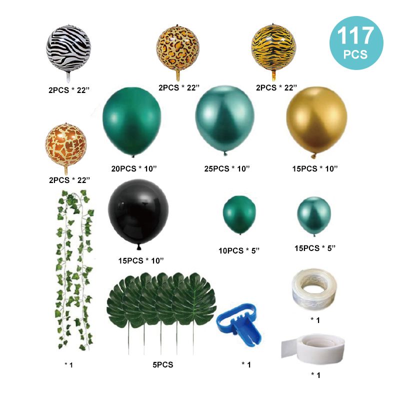 Ballonggirlande – Gold-Grün. In der Packung 117 Stk.