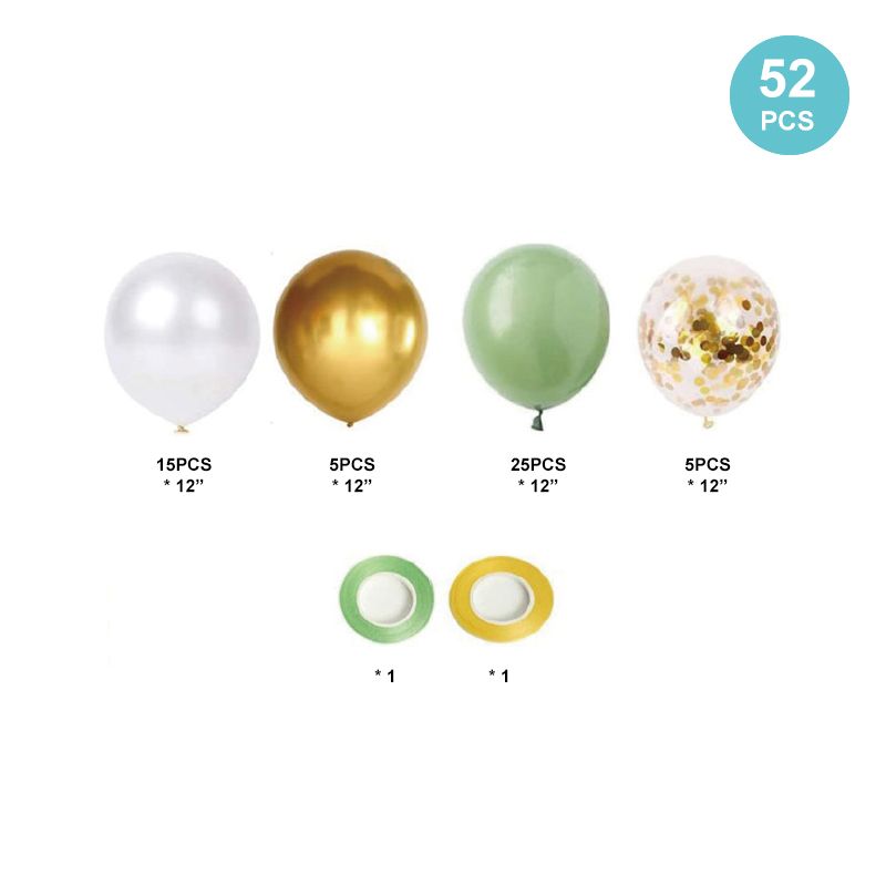 Ballonggirlande – Gold-Grün. In der Packung 52 Stück.