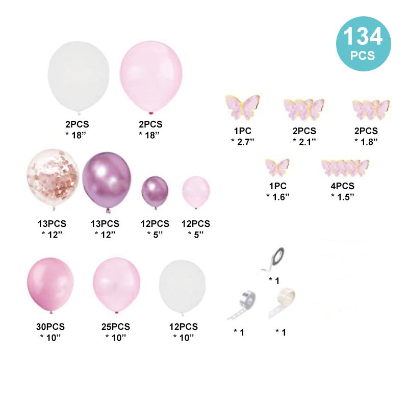 Ballonggirlande - rosa. Im Set enthalten 134 Stück.