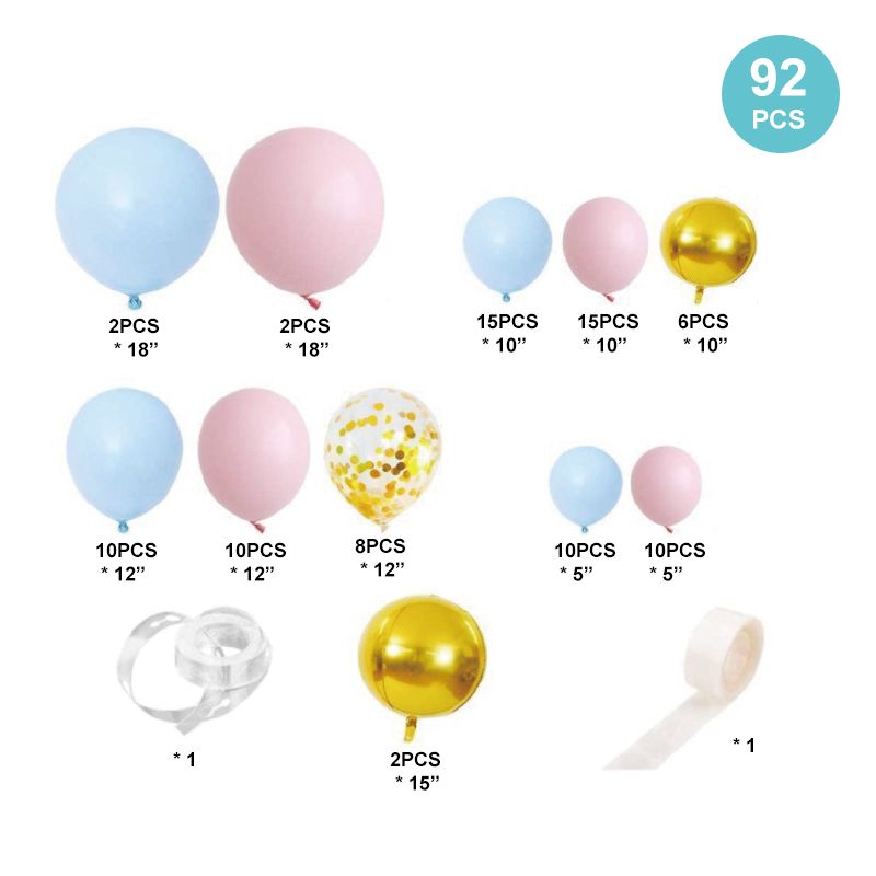 Ballonggirlande - rosa-blau. Im Set 92 Stück.