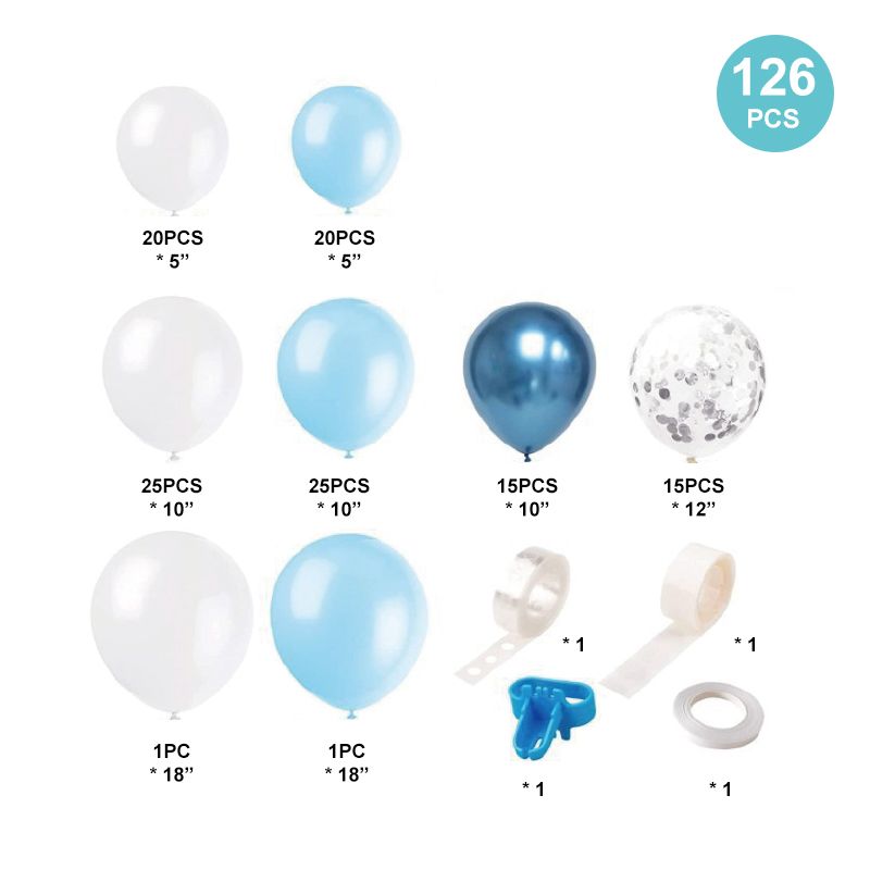 Prachtvolgar Girlande aus Ballons in Weiß-Blau sorgt wirklich für eine festliche Atmosphäre. Diese atemberaubende Girlande sieht schön aus, wenn sie an der Wand über dem Tisch als Hauptdekoration Ihrer Feier befestigt ist. Sie können sie über dem Eingang montieren und so ein prachtvolles Tor schaffen. Diese elegante und stilvolle Dekoration zieht Aufmerksamkeit auf sich und erfreut alle Gäste. Ideal für eine Hochzeit, Taufe, Geburtstag, Erstkommunion, Jubiläum oder eine andere luxuriöse Feier. Dank der fenomenalen Ballon-Dekoration wird der Ort für Erinnerungsfotos schön hervorgehoben. Installieren Sie unter der Girlande einen farblich abgestimmten Vorhang. Legen Sie dahinter einen Strauß Heliumballons, bereiten Sie eine Bar oder eine süße Theke vor. Verwöhnen Sie Ihre Gäste mit unvergesslichem Spaß beim Festhalten glücklicher Partyfotos.