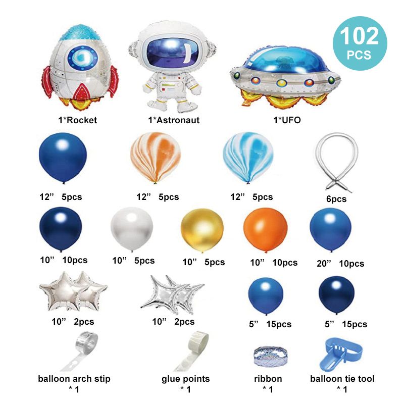 Prachtvolgar Girlande aus Ballons mit Weltraum-Motiv schafft wirklich eine festliche Atmosphäre. Diese atemberaubende Girlande sieht schön an der Wand über dem Tisch befestigt aus und ist die Hauptdekoration Ihrer Feier. Sie können sie über dem Eingang montieren und so ein pompöses Tor schaffen. Diese elegante und stilvolle Dekoration zieht Aufmerksamkeit auf sich und erfreut alle Gäste. Ideal für Taufe, Geburtstag, Schulabschluss oder -beginn, Jubiläum oder eine andere Feier. Dank der phänomenalen Ballon-Dekoration betonen Sie den Ort für Erinnerungsfotos schön. Installieren Sie unter der Girlande einen farblich abgestimmten Vorhang. Legen Sie dahinter einen Strauß Heliumballons, richten Sie eine Bar oder einen Süßigkeiten-Tisch her. Verwöhnen Sie Ihre Gäste mit unvergesslichem Spaß beim Aufnehmen glücklicher Partyfotos.