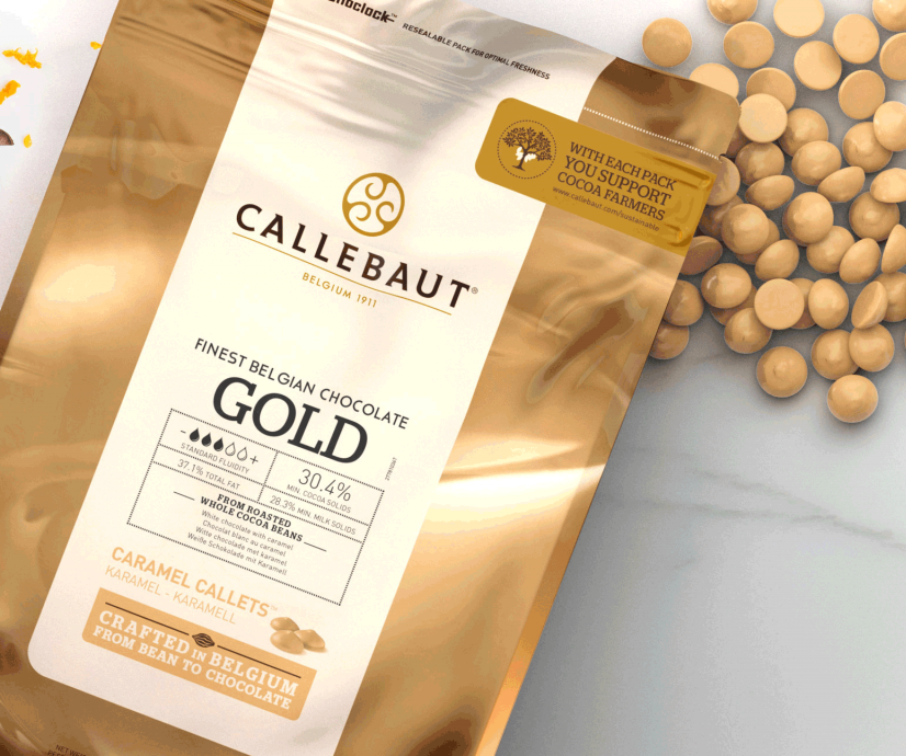 Callebaut Karamell-Schokolade Gold. Verpackung 250 g.