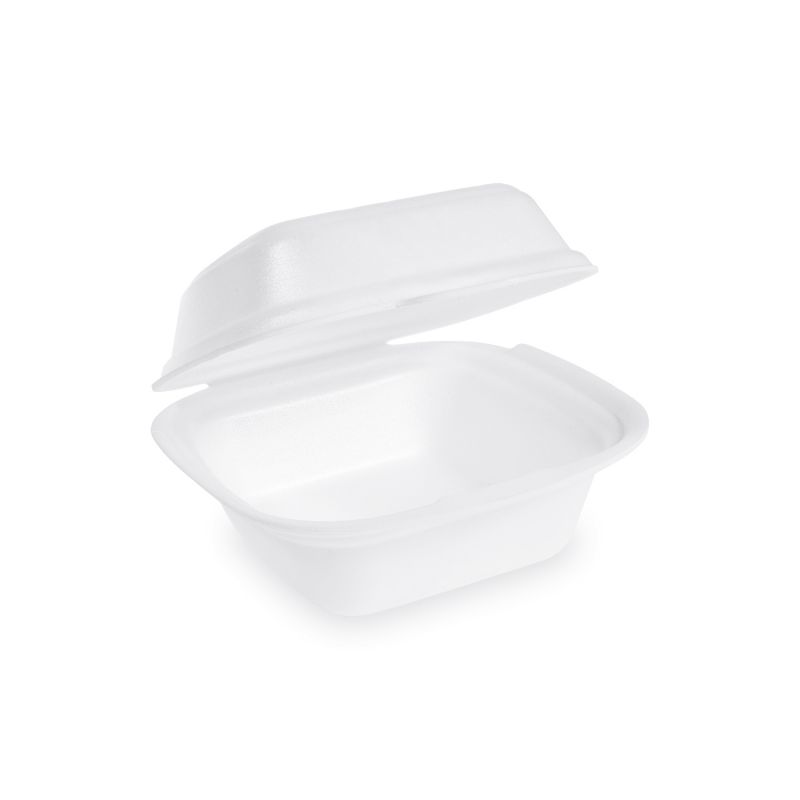 Bento Kuchenbox weiß. Hergestellt aus Zuckerrohr. Abmessungen 152 x 150 x 78 mm. In einer Packung mit