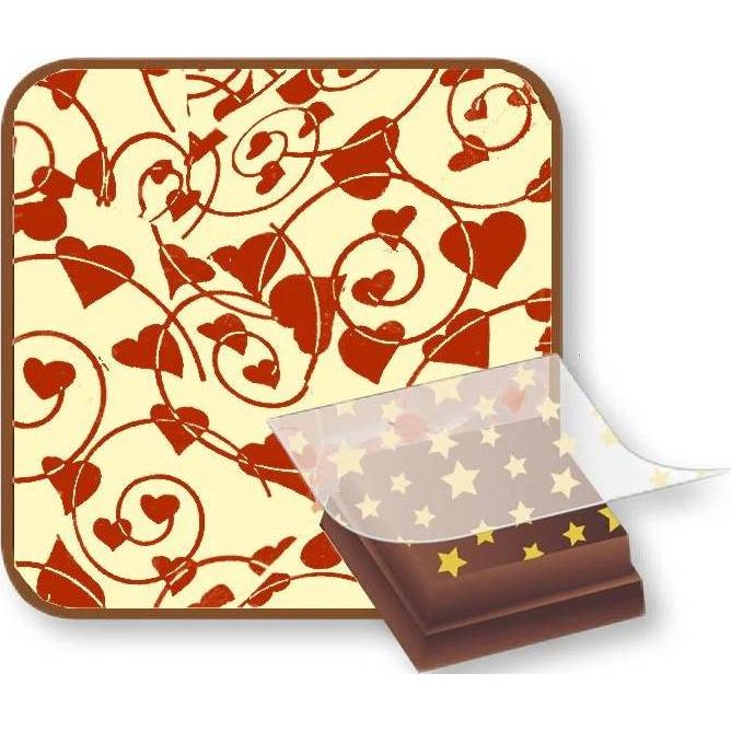Größe: 36,5 x 25 cm (Muster ca. 33,5 x 23 cm) Schokoladen-Dekorationsfolie zur Verwendung insbesondere auf Pralinen, Schokoladenkuchen und anderen Schokoladenprodukten