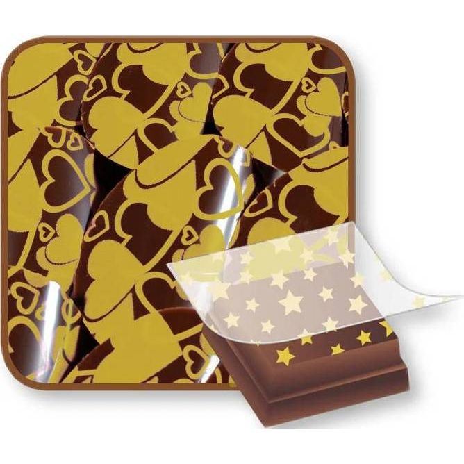 Größe: 36,5 x 25 cm (Muster ca. 33,5 x 23 cm) Schokoladen-Dekorationsfolie, die insbesondere für Pralinen, Tortenaufleger mit Schokoladenglasur und andere Schokoladenprodukte verwendet werden kann