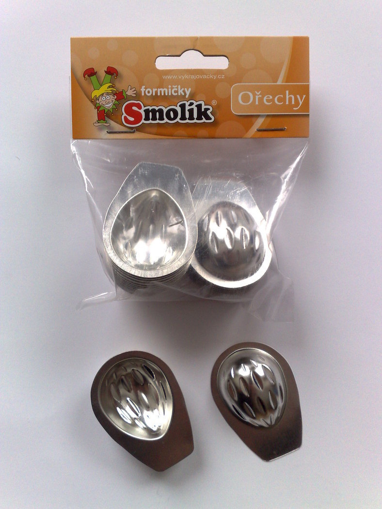 Die Formen haben die Maße 55 × 38 × 15 mm. Sie sind aus gesundheitlich unbedenklichem Weißblech hergestellt, aus dem die Bonbons immer gut herauskommen. Das Set enthält zwanzig Formen.