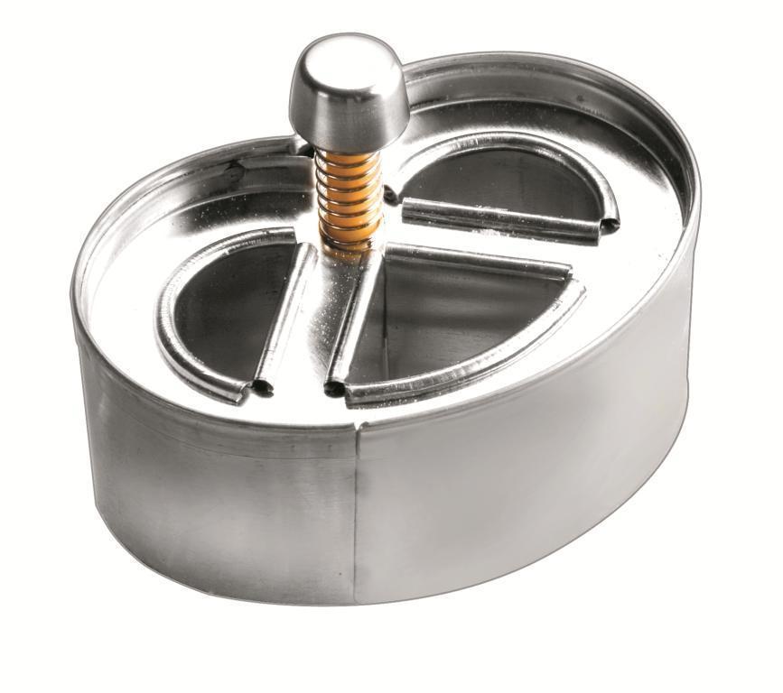 Mini-Ausstechform in Form eines runden Kreuzes aus Weißblech.