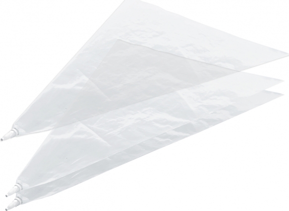 Die durchsichtigen Plastiktüten sind mehrfach verwendbar, sie haben eine dichte Schweißnaht. Der Durchmesser des Lochs in der Spitze beträgt ca. 1,5 mm.