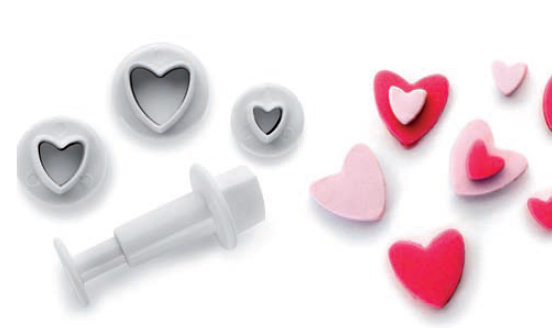 Mit diesem dreiteiligen Dekorationsset wird die Herstellung von herz- und herzförmigen Dekorationen zu einem einfachen und lustigen Unterfangen. Das Entfernen der fertigen Form ist dank des mitgelieferten Extruderaufsatzes kein Problem.