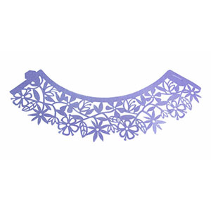 Das dekorative Halsband mit Blumenmotiv ist lila. In der Packung befinden sich 12 Halsbänder. Wenn Sie Süßigkeiten-Cupcakes, Muffins usw. auf interessante Weise dekorieren möchten, dann ist dieses elegante Halsband eine geeignete Wahl.