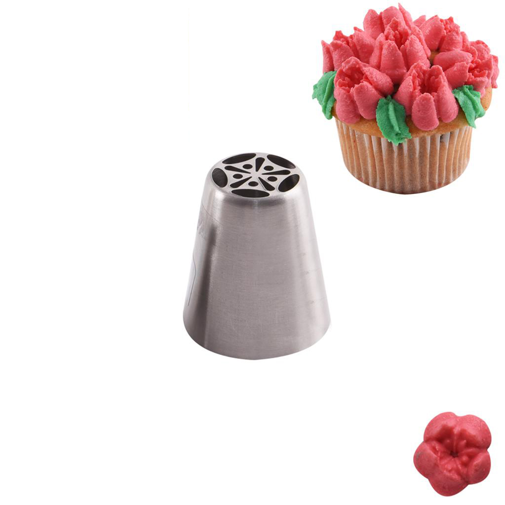 Mit der russischen Edelstahlspitze zaubern Sie in einem Schritt eine schöne Sahnetulpe. Setzen Sie die Spitze in einen Spritzbeutel, füllen Sie die Creme ein und schon können Sie Tulpen kreieren. Die perfekte Spitze für die schnelle Dekoration von Torten und Cupcakes.