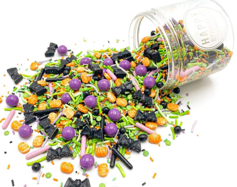 Eine wunderschöne essbare Halloween-Streuselmischung! Verwenden Sie diese Mischung, um Ihre Kuchen oder Tassenkuchen zu dekorieren, und schon bald haben Sie ein echtes Halloween-Dessert.