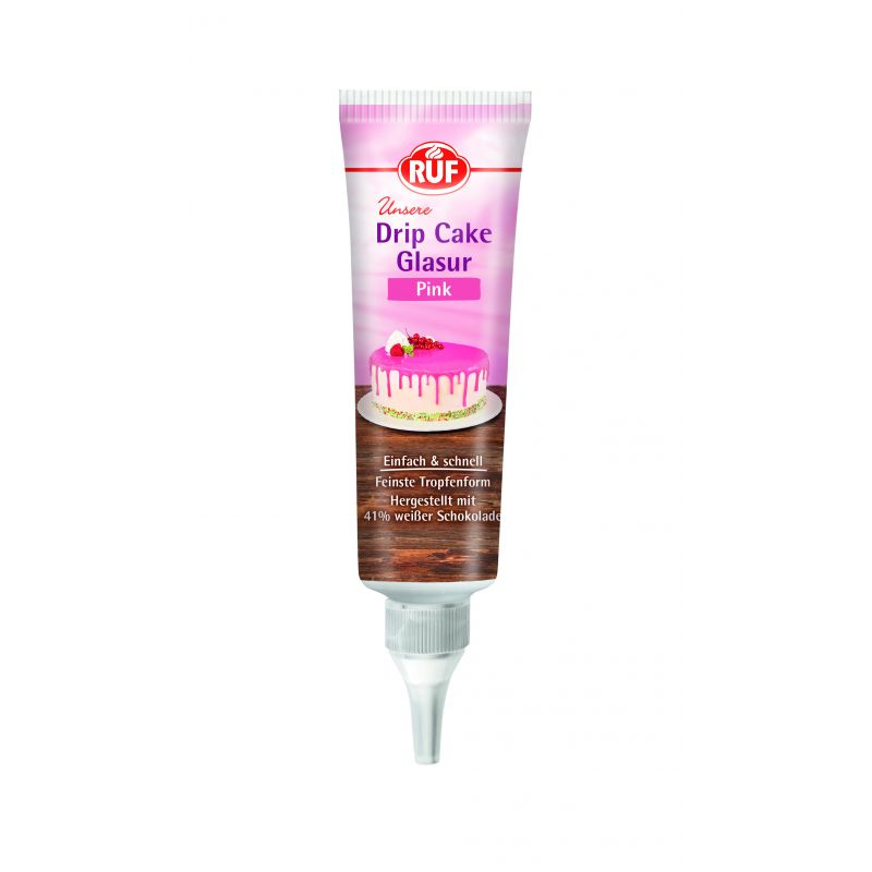 Der wohl schönste Tortendekorationstrend aus den USA, Drip Cake Dieser Dekorationstrend darf auf keiner Hochzeit fehlen Eine Torte, Geburtstagstorte oder Taufe mit hübschen Tropfen aus Schokolade oder bunten Bonbons, die an den Seiten der Torte heruntertropfen. Die Tropfen laufen am Rand der Torte herunter, manchmal in kurzen, manchmal in langen Tropfen, was jeder Torte ein ganz besonderes Aussehen verleiht. Bei besonderen Anlässen wie Geburtstagen, Hochzeiten und Taufen dürfen Tropfentorten natürlich nicht mehr fehlen. Doch wie erreicht man am besten einen tropfenden Tortenaufleger? Die Antwort ist ganz einfach: mit unserer gebrauchsfertigen Tropfkuchenglasur Mit unserer TropfkuchenglasurMit unserer Tropfglasur erstrahlen Ihre Kreationen in einer leuchtenden Farbe aus 41 % weißer Schokolade. Erhitzen Sie einfach den Glasurschlauch im Wasserbad und schon ist Ihre Tropfkuchenglasur fertig zum Verzieren. Der wunderbare Geruch von weißer Schokolade und die wunderschöne rosa Farbe machen jeden Kuchen zu einer wahren Augenweide. Mit unserer Drip Cake Pink Glasur können auch Kekse und Cupcakes veredelt werden.