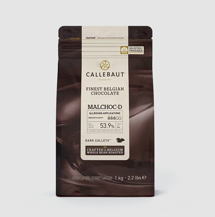 Callebaut Malchoc-Schokolade ist ohne Zuckerzusatz. Diese dunkle Schokolade hat ein ausgewogenes bittersüßes Kakaoaroma. Ohne Zuckerzusatz erhält die Schokolade ihre angenehme Süße durch den Zuckeraustauschstoff Maltitol, ergänzt durch natürliche Bourbon-Vanille. Geschmack und Haptik der Schokolade kommen der traditionellen Callebaut 811-Schokolade sehr nahe - sie hat denselben Knack, dieselbe Haptik, dieselbe Farbe und einen schönen Glanz. Die Schokolade bietet Raum für Kreativität, da sie für alle Arten von Schokoladenarbeiten verwendet werden kann. Um das Schmelzen zu erleichtern, wird die Schokolade in Tropfenform geliefert, die 53,9 % Kakaoanteil enthalten und aus feinster belgischer Schokolade hergestellt sind. CSD-Q54MAL-EX-U68 - Callebaut Malchoc-D.