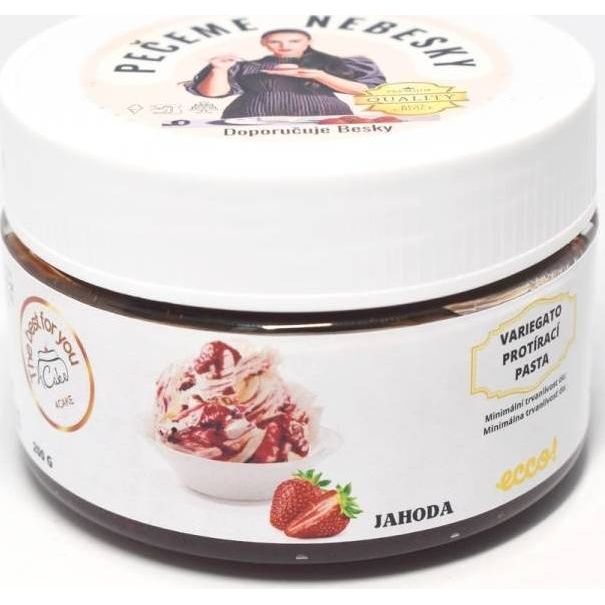 Eine sickernde Paste im Speiseeis. Kann auch in Konditoreiprodukten verwendet werden. Zutaten: Glukose-Fruktose-Sirup, Erdbeeren, Zucker, modifizierte Stärke E1422, Säureregulator E330, Farbstoff E120, Verdickungsmittel E406, Zitronen- und Färberdistelkonzentrat, Konservierungsmittel E202, AromenDosierung: Nach Bedarf Nährwerte pro 100 g: Energie 1222 kJ/288 kcal, Fett 0 g (davon gesättigt 0 g), Kohlenhydrate 69,9 g (davon Zucker 57 g), Ballaststoffe 1,2 g, Eiweiß 0,5 g, Salz 0,01 g