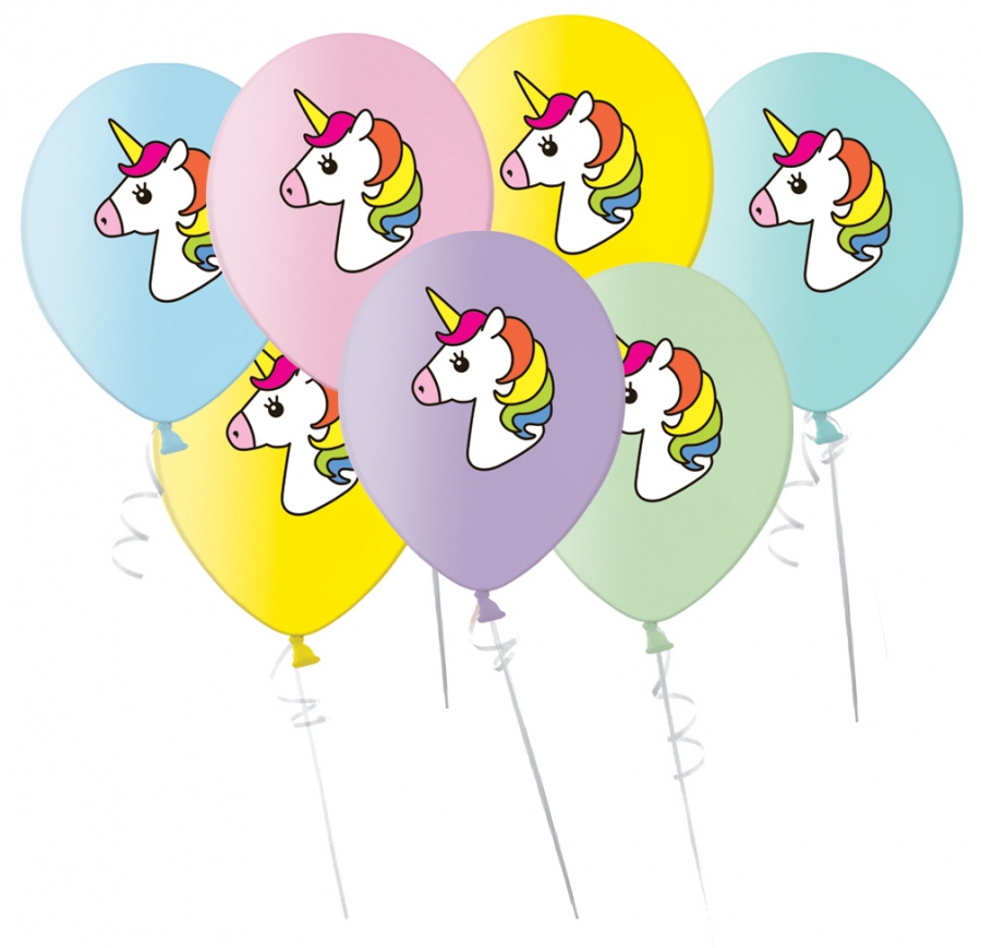 Latexballons mit Einhorn-Motiv sind eine attraktive Dekoration nicht nur für Geburtstagsfeiern. Im Set finden Sie 7 Ballons, die Sie mit Luft oder Helium aufblasen können.
