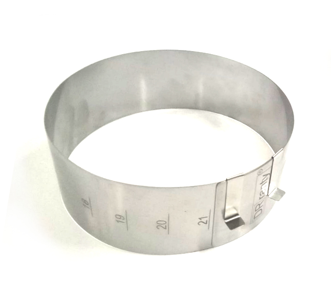 Mit der verstellbaren runden Form können Sie Kuchen und Desserts mit beliebigem Durchmesser herstellen. Durchmesser 18 - 21 cm.