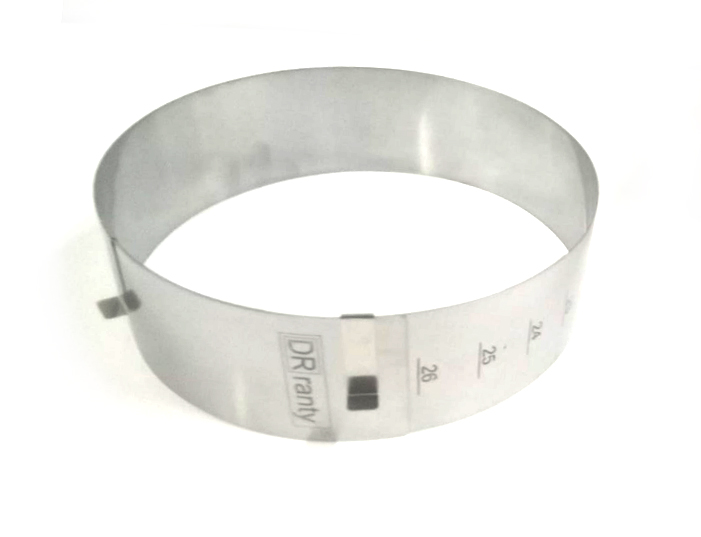 Verstellbare runde Kuchenform. Verstellbarer Rand der Form mit einem Durchmesser von 22 - 26 cm. 8 cm hoch. Hergestellt aus haltbarem und verformungsgeprüftem Edelstahl. Das Set enthält zwei Befestigungsklammern. Die runde Kuchenform ist eine Alternative zu herkömmlichen Backblechen. Andererseits ist sie viel funktioneller, da sie frei verstellbar ist. Die Verwendung des Randes wird unter anderem dadurch erleichtert, dass er keinen Boden hat und zwei Clips am Set angebracht sind, mit denen seine Seiten befestigt werden. Es genügt, Backpapier oder Pergament auf eine beliebige Fläche zu legen, den verstellbaren Rand darauf zu stellen und dann die Masse darauf zu verteilen. Nach dem Herausnehmen aus dem Ofen behält das Gebäck seine perfekte Form. Außerdem ist er leichter zu portionieren als Süßigkeiten auf einem herkömmlichen Backblech.