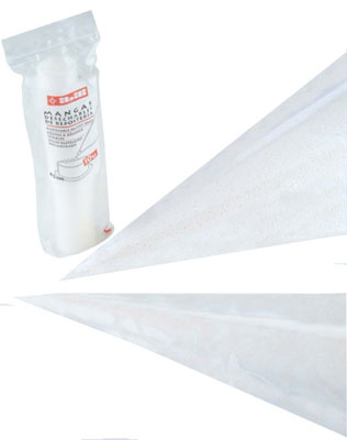 Praktische Einweg-Backbeutel. 30 cm große Beutel für verschiedene Cremes, Eischnee usw. Nach Gebrauch einfach wegwerfen. 100 Beutel pro Packung. Die Einwegtüten eignen sich für zarte Konditoreidekorationen. Die Beutel werden in einer praktischen Verpackung geliefert. So haben Sie sie immer zur Hand, egal ob Sie Weihnachtssüßigkeiten oder Lebkuchen für den Jahrmarkt dekorieren wollen.