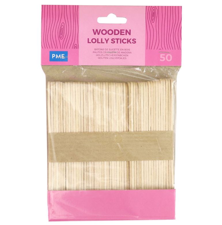 Die Eisstiele von PME sind aus gesundheitlich unbedenklichem Holz hergestellt und so behandelt, dass sie nicht splittern oder andere unbeabsichtigte Verletzungen verursachen. Sie sind für den einmaligen Gebrauch bestimmt. 50 Stück Holz pro Packung. Länge 11 cm.