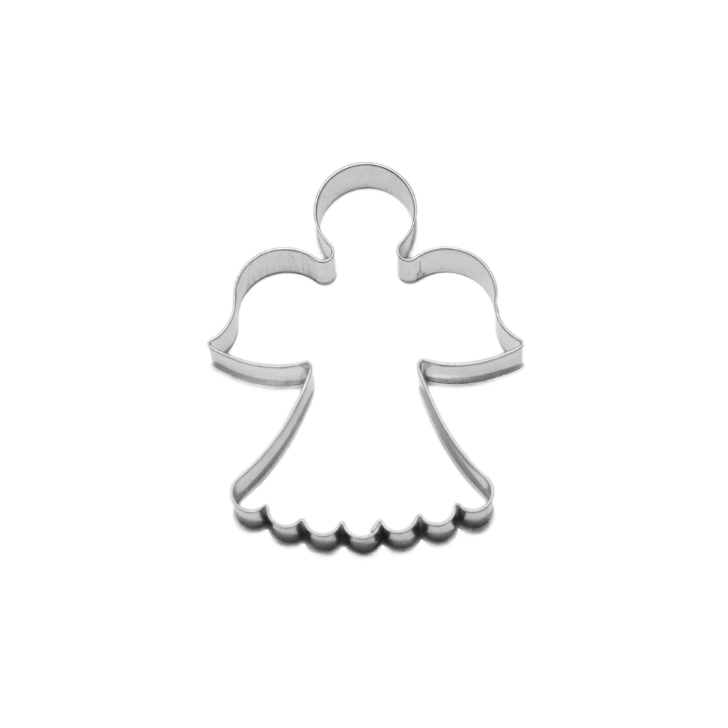 Glatter Ausstecher aus Weißblech in Form eines Engels.