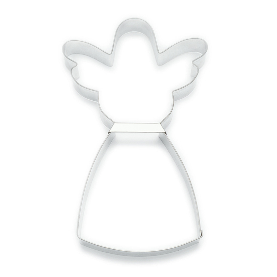 Glatter Ausstecher aus Weißblech in Form eines Engels.