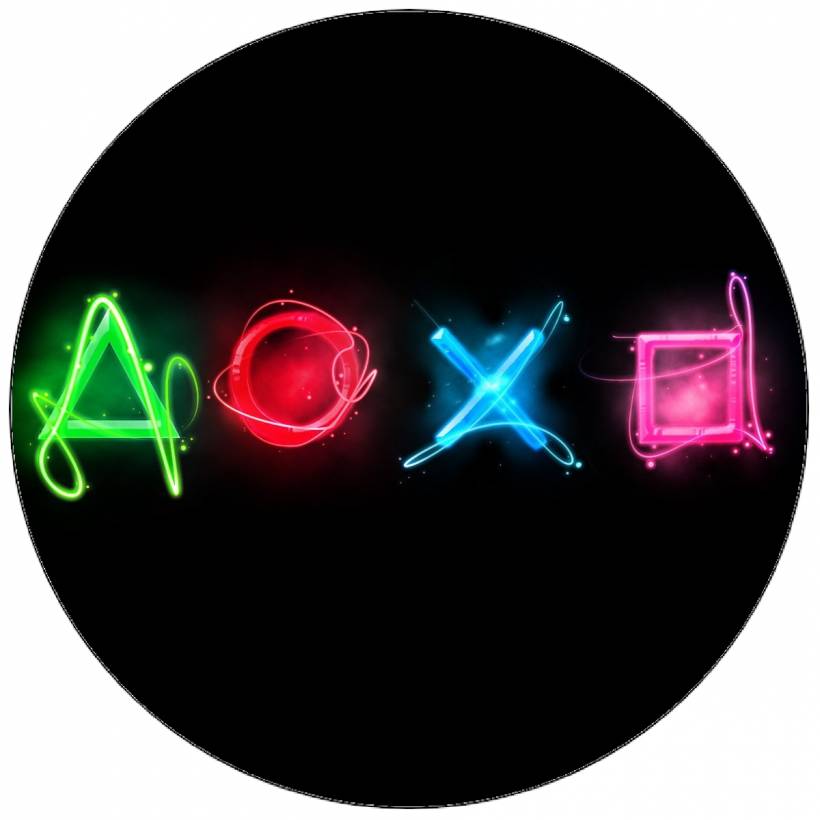 Essbare Papier Playstation Tasten auf schwarzem Hintergrund 19,5 cm