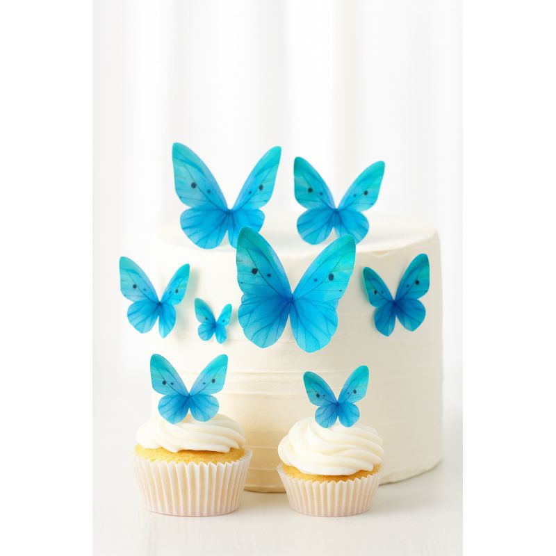 Essbare Papierdekorationen Blaue Schmetterlinge (8 Stück)