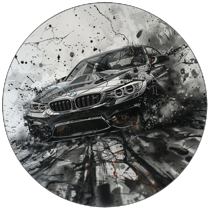 Essbares Papier BMW Schwarz-Weiß-Foto 19,5 cm