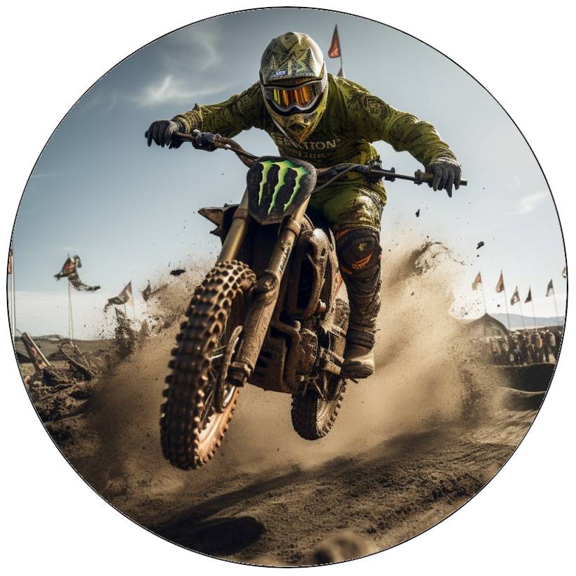 Essbares Papier Fahrer Motocross in grünem Trikot 19,5cm
