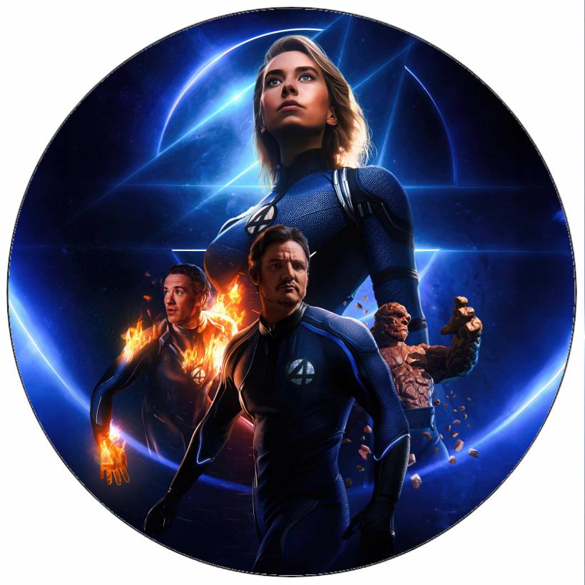 Essbares Papier Fantastische Vier Hauptfiguren auf blauem Hintergrund 19,5 cm